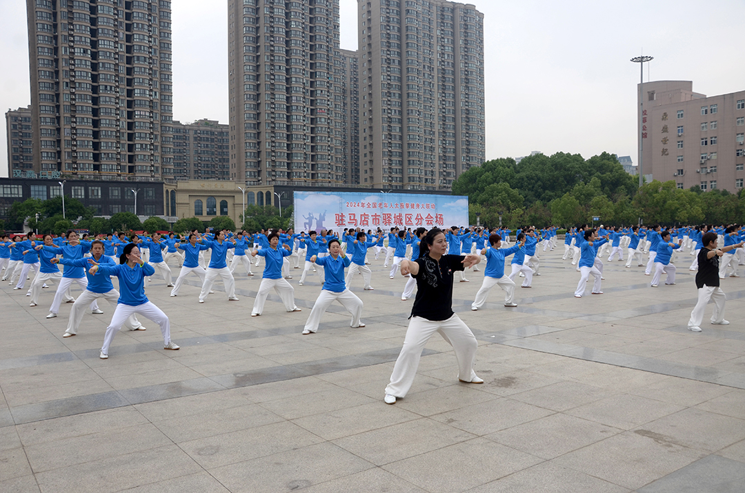 5月19日上午,驻马店市世纪广场长空万里,由中国老年人体育协会主办,中国老年人体育协会太极拳专项委员会执行,驿城区委老干部局、驿城区卫健体委、驿城区老体协共同承办的2024年全国太极拳大联动驿城区分会场启动仪式在这里隆重举行。来自全区500名太极拳健身爱好者身着统一的服装参加了此次活动。