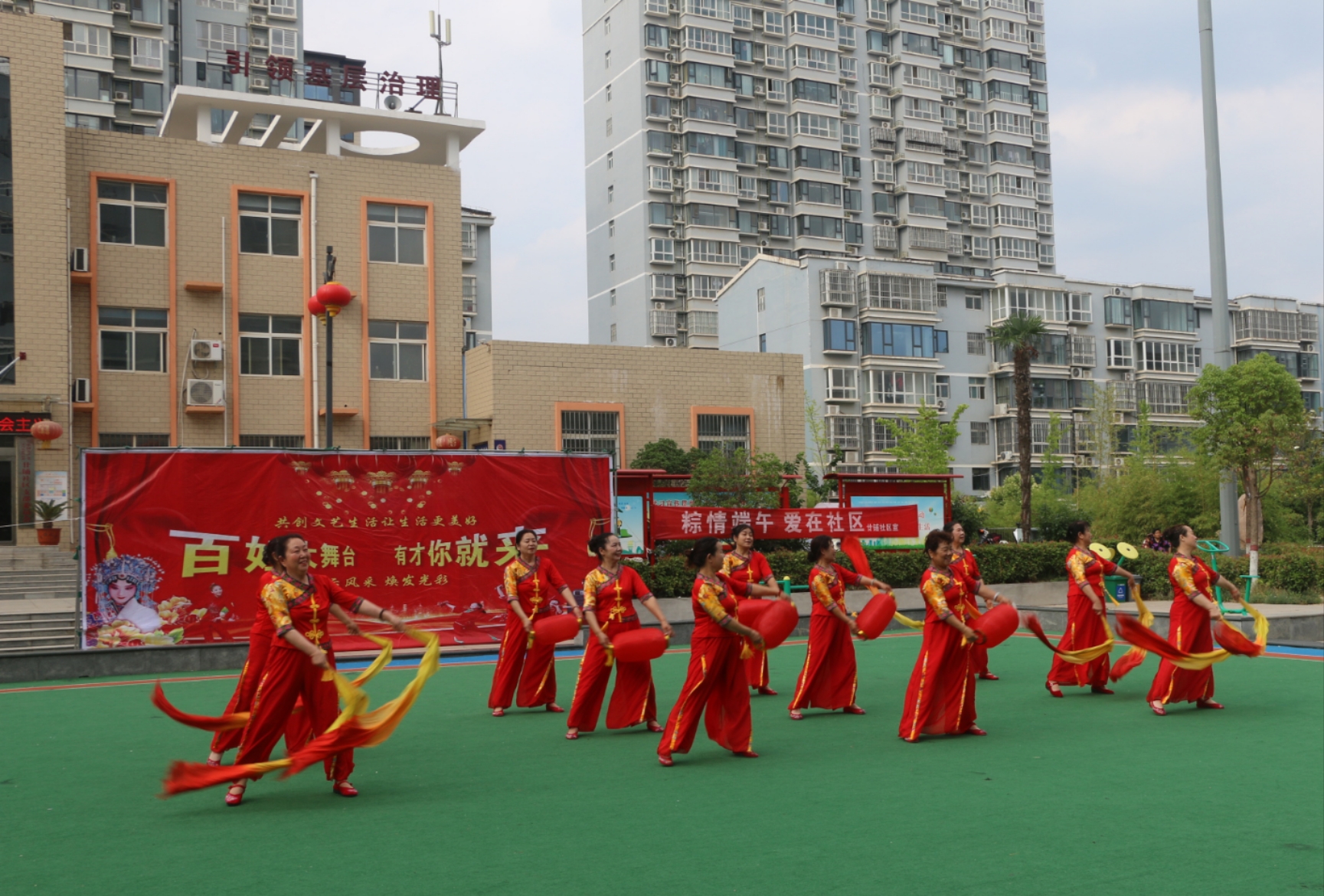 为庆祝这一传统节日,祈求丰收和安康,端午节前夕,由千秋社区传统文化志愿者牵头组织,义马市新区街道办事处礼召社区举办的《百姓大舞台,有才您就来》公益演出活动盛大开幕。10多个文艺团体组织,30多个节目,300余人在这里登台展示。他们通过舞蹈、合唱、葫芦丝、戏曲、诗朗诵、三句半、手语舞等表达了对祖国的热爱和赞美,描述了中国美丽的景色、发展里程和人民奋斗精神,红红火火闹端午,热热闹闹庆丰收。