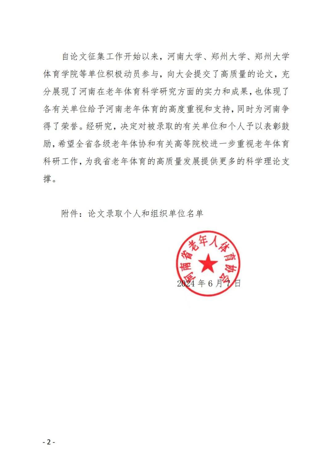 关于表彰第九届全国老年人体育科学大会河南论文录取单位和个人的通知