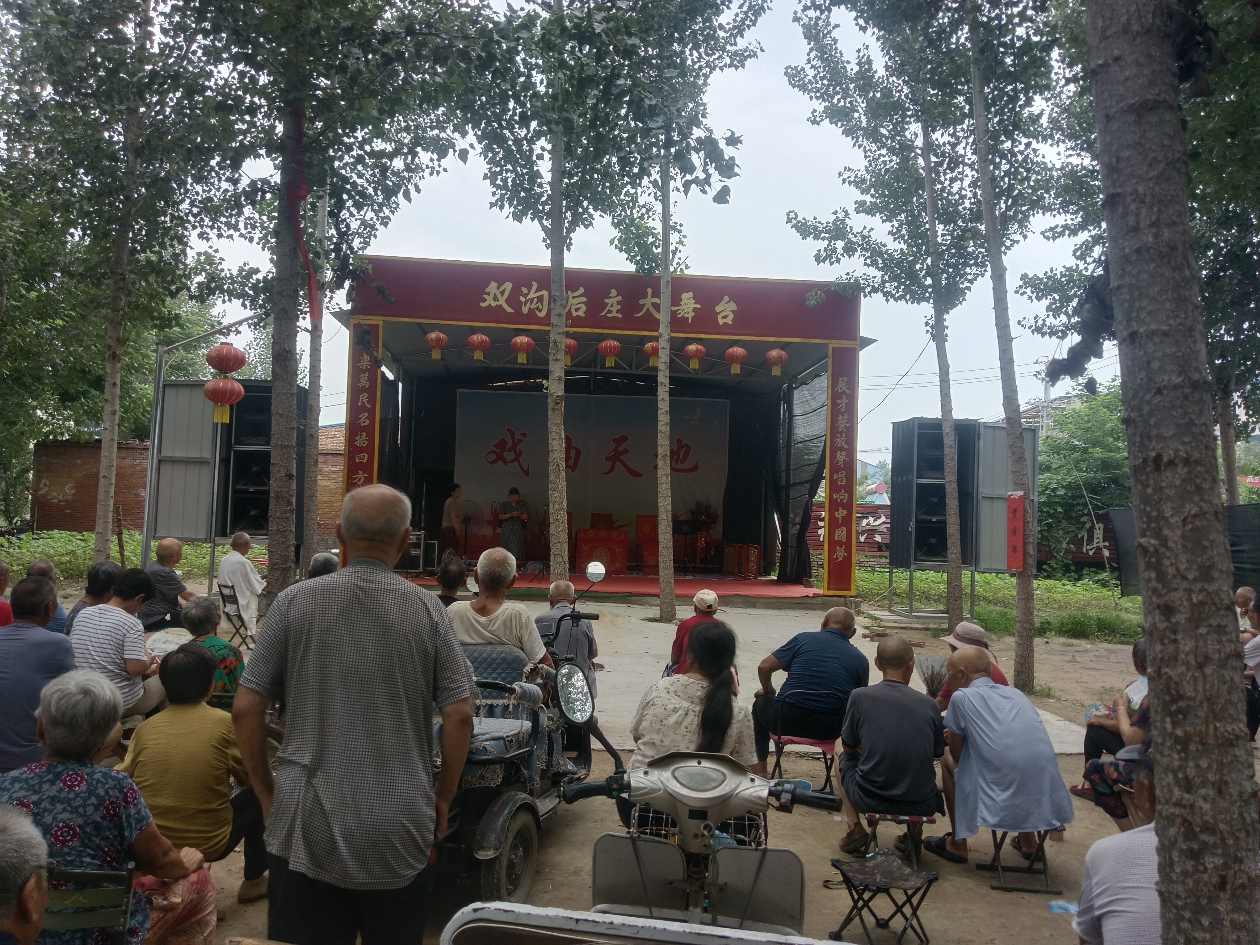在演出现场,演员们汗流浃背、一丝不苟,唱腔纯正、吐词清晰。专业精彩的表演,浓郁地方特色戏,赢得了在场同样一身汗水群众的阵阵掌声。演出节目既有《南阳关》《辕门外》《朝阳沟》《四千岁》等经典剧目,又有《要彩礼》《文明乡村》等现代新戏。戏台上,演员们用心演绎,节目精彩纷呈,既让人捧腹大笑,又充满生活韵味;戏台下,村民们面带笑容,听得认真,品得仔细,沉醉其中,过足戏“瘾”,展现了文化惠民生的热闹场景。