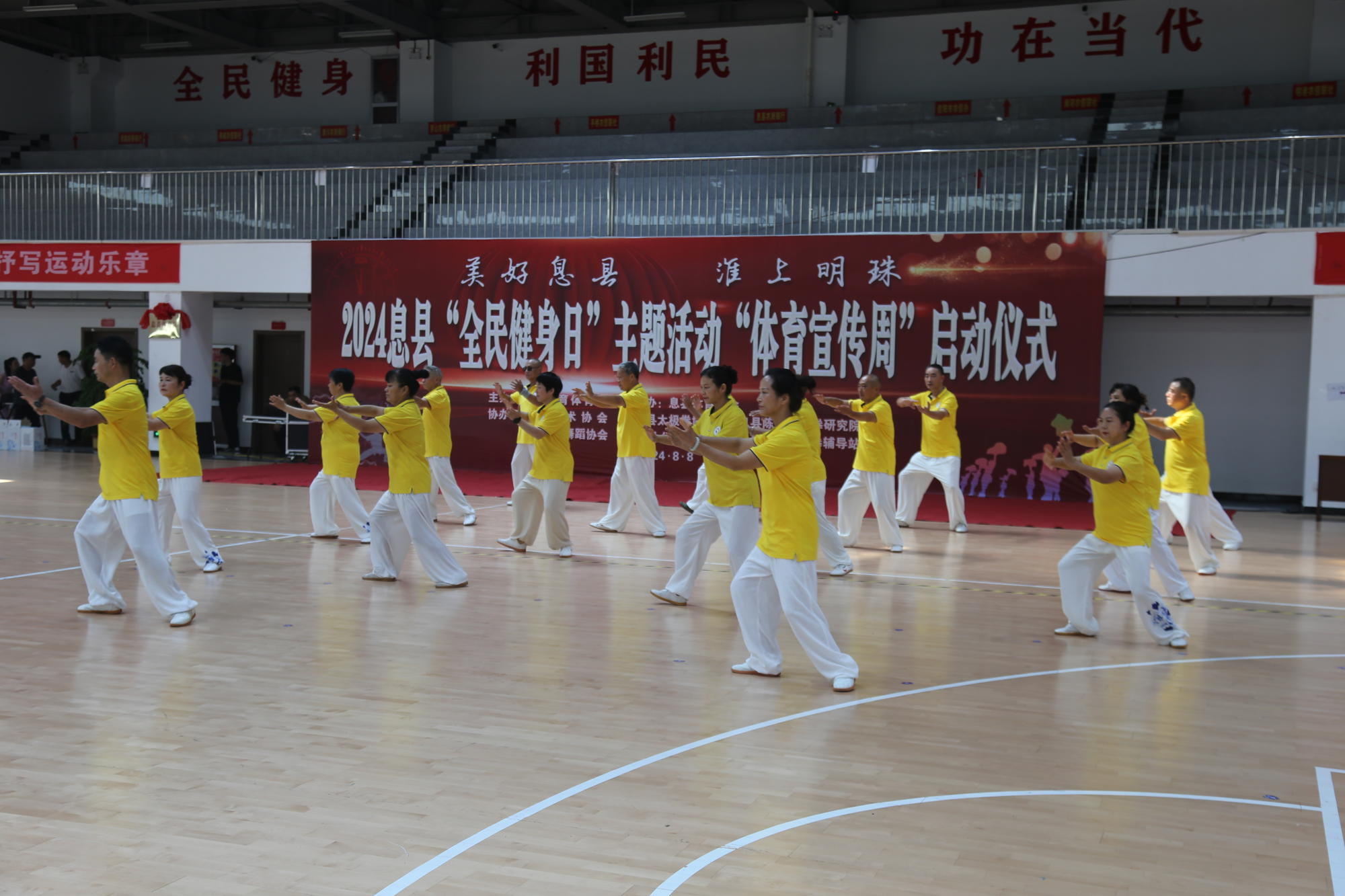 濮山拱翠,淮水放歌。在这绿树成荫的八月,由信阳市息县教育体育局主办,息县体育中心、息县体育总会承办,息县各体育协会协办的2024年息县“全民健身日”主题活动“体育宣传周”启动仪式,于8月8日在息县体育馆隆重举行。