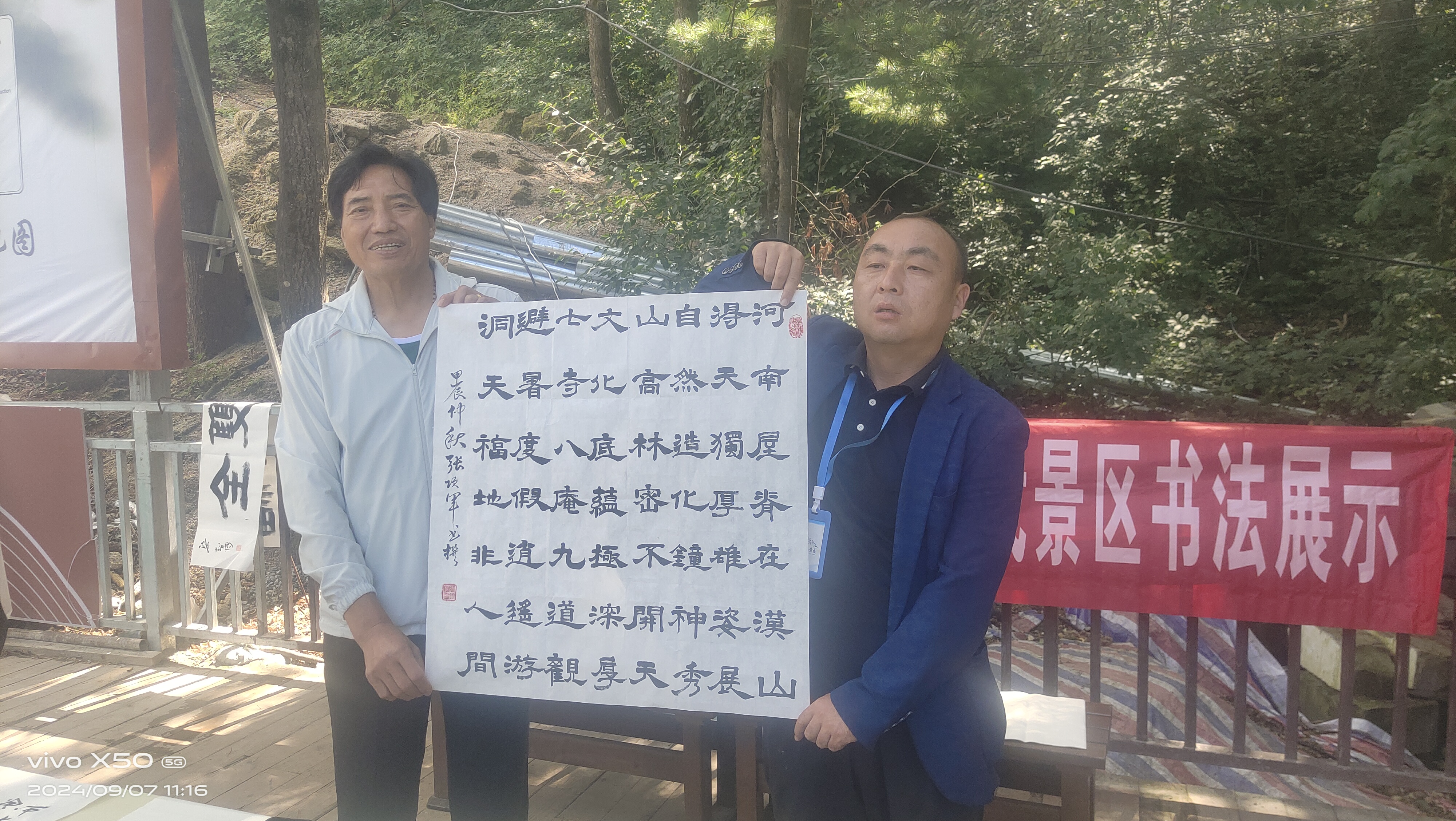近日,灵宝市老体协书法绘画专委会一行8人在专委会主任梁建军的带领下,走进灵宝市汉山风景区,向该景区及和优秀教师及游客们书写书法作品,为景区烘托浓浓的游览氛围,向景区送上文化大礼包,给景区增添了特殊的一景。