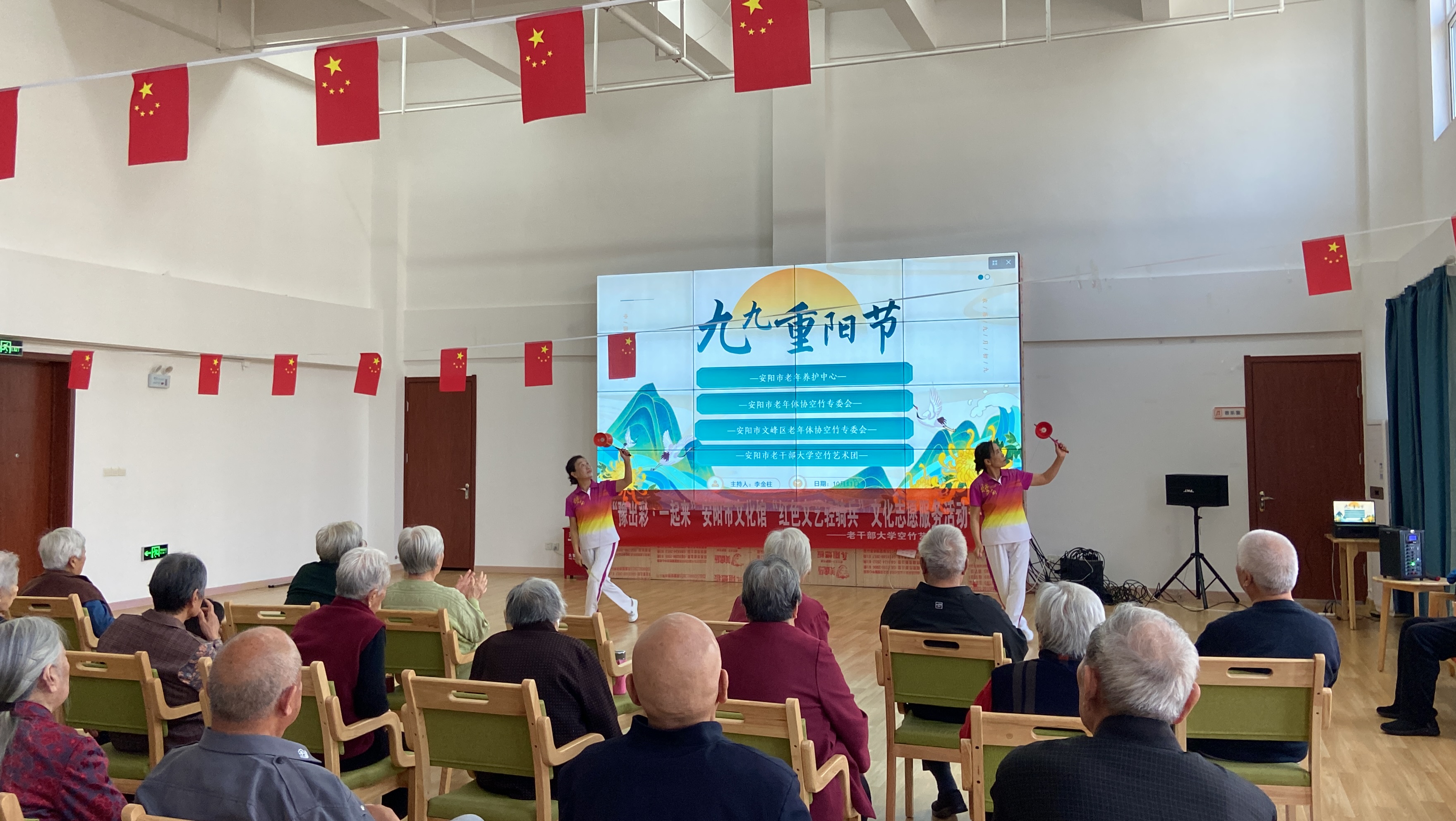 秋高气爽,丹桂飘香,为弘扬中华民族敬老爱老传统美德,文峰区老年体协空竹专委会联合老干部大学空竹艺术团于10月11日下午三点在安阳市老年养护中心进行了空竹专场慰问演出,为居住在养护中心的老人们献上了一场精彩的空竹表演。表演现场,演员们纷纷献艺,个个身手不凡,空竹在他(她)们手中上下翻飞,技术矫健娴熟,令人赞叹。丰富多彩的表演,现场气氛热烈,老人们其乐融融,节日充满温馨,演出在欢哥笑语中结束,老人们拉着演员们的手说,“欢迎你们再来”!