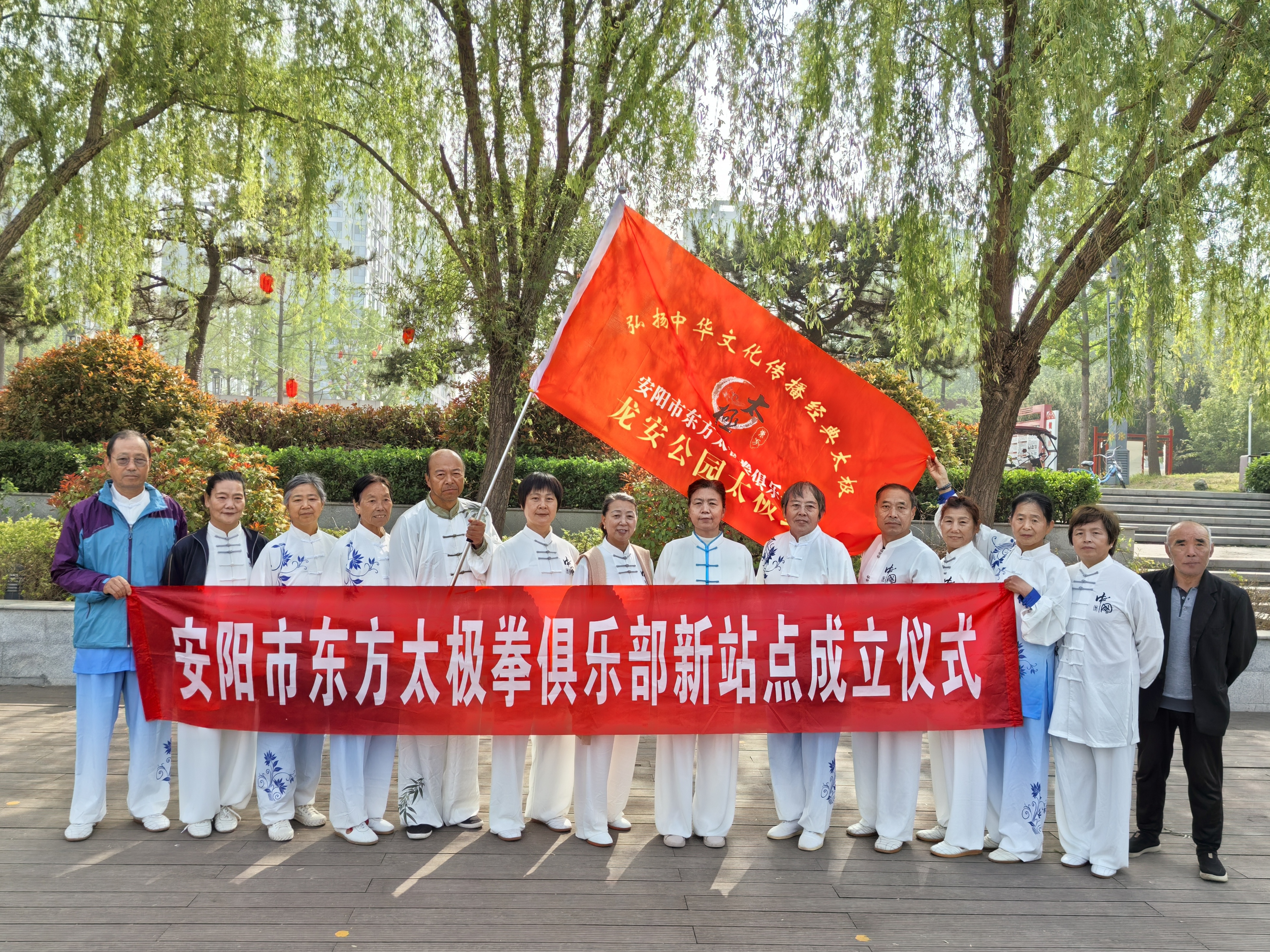 春风拂绿柳,拳韵动龙安。2025年4月19日清晨,龙安公园内晨光熹微、草木葱茏,一场承载着传统文化传承与全民健康使命的盛事在此拉开帷幕。东方太极拳俱乐部领导与各站点代表齐聚一堂,以昂扬之姿、奋进之心,共同见证“龙安公园太极拳站点”授旗仪式的隆重举行。这不仅是一场新站点的诞生礼,更是一曲弘扬民族文化、践行健康中国的时代赞歌。