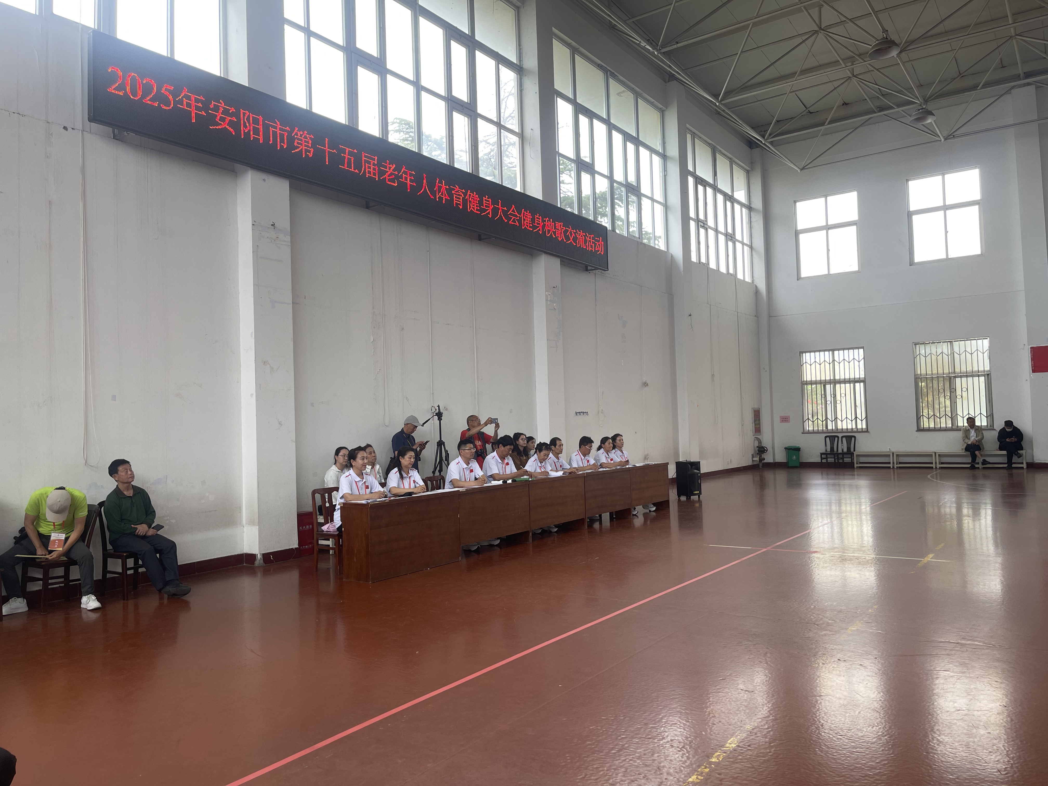 2025年5月8日上午9时,安阳市第十五届老年人体育健身大会健身秧歌交流活动在市老年文体苑举办。参加开幕式的领导有安阳市老年人体育协会副主席徐瑞平、林州市老年人体育协会主席王润章、北关区老年人体育协会主席王才根、殷都区老年人体育协会主席欧阳瑞芹、安阳市体育发展服务中心副主任叶玮、本次交流活动裁判长彭涛。开幕式由叶玮主持。