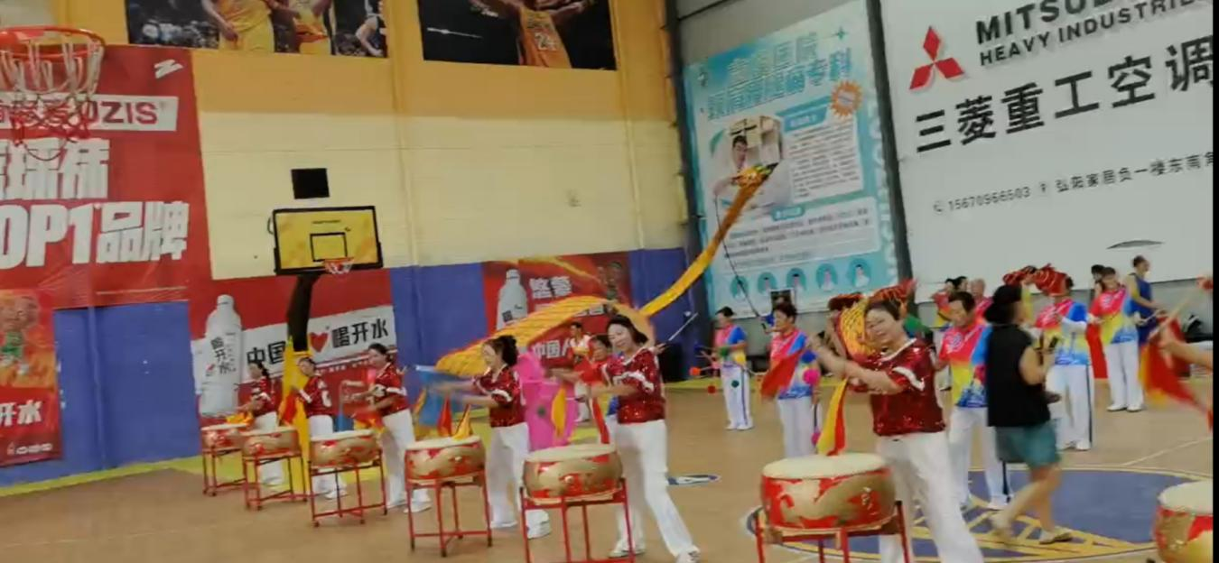 现场处处洋溢着欢腾的气息,真正是载歌载舞,热闹非凡。舞台上,山阳区老体协自编自创的舞蹈《山阳农民丰收乐》精彩上演,队员们服装鲜艳,舞姿灵动,展现出丰收的喜悦和农民的质朴,赢得台下观众阵阵掌声。舞台下,趣味篮球表演同样吸睛,表演者们娴熟地玩转篮球,时而胯下运球,时而指尖转球,引得喝彩不断。一旁的幼儿篮球和成人篮球友谊赛也在火热进行中,小队员们虽然年纪小,但运球、投篮有模有样,充满活力。这一系列精彩的活动,为即将到来的第十七个 “全民健身日” 预热,营造出浓厚的全民健身氛围。