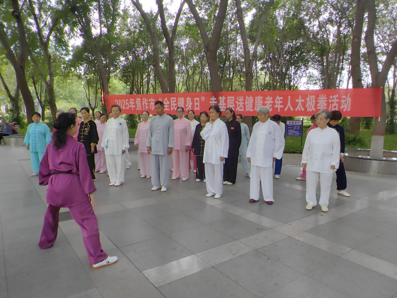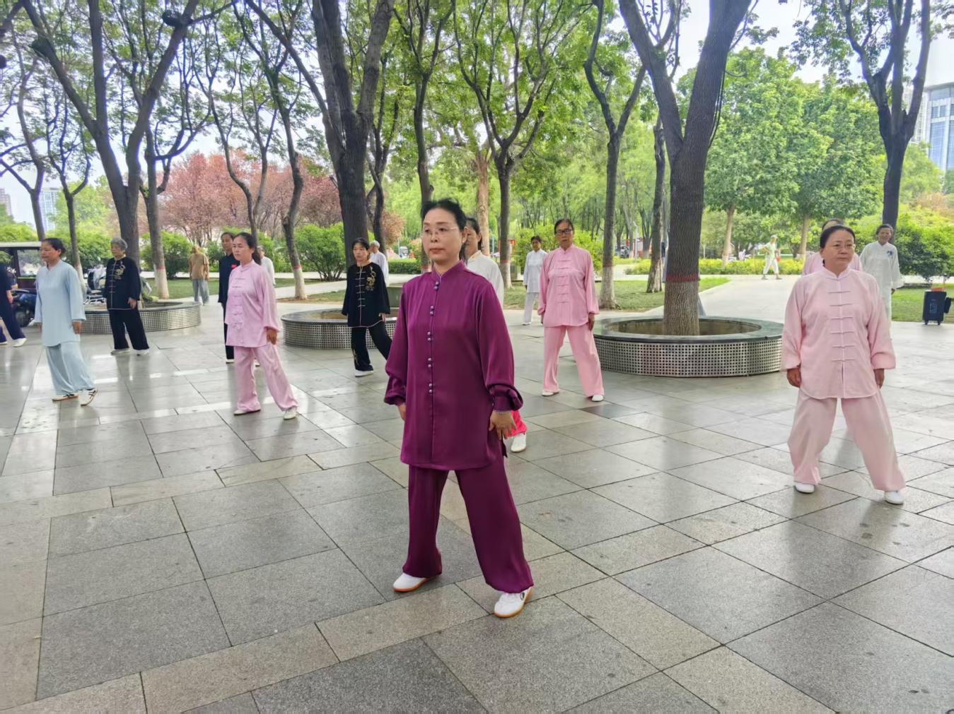 在解放区人民广场,太极拳爱好者们列阵以待,谷慧玲教练早已站在队伍前方。她身着素雅太极服,身姿沉稳,先是完整演示了一套经典太极拳路,动作行云流水,刚柔并济的韵味在晨光中愈发清晰。随后,她逐一把关每个动作细节:“注意脚步站位要虚实分明,手臂伸展时需沉肩坠肘,身体扭转要配合腹式呼吸。” 遇到动作不到位的学员,她会耐心上前调整姿势,用通俗易懂的语言讲解发力原理,将太极文化中的养生智慧融入每一个指导瞬间。在她的细致点拨下,爱好者们的招式愈发精准,举手投足间更显太极底蕴。