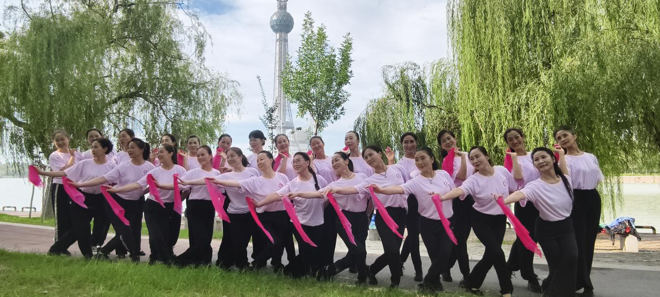 山阳区龙源湖旁,广场舞的欢快旋律响彻湖畔,李朝教练正带领着队伍翩翩起舞。她穿着色彩明快的运动装,笑容灿烂,每个舞步都充满力量与节奏感。“转身时注意膝盖微屈,保持重心稳定!” 李朝一边领舞,一边用洪亮的声音提醒着大家,时不时停下动作拆解难点,纠正队形。她编排的动作既贴合老年人群的身体特点,又不失活力,让队伍的舞姿整齐划一,充满朝气。不少路过的群众被这专业又热闹的氛围吸引,纷纷跟着李朝的指导模仿起来,瞬间融入健身的热潮。