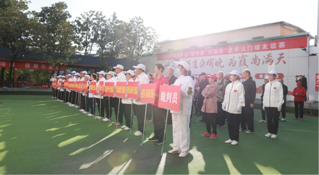 红旗漫卷迎华诞,月满中秋共团圆。双节并至,为丰富老年人精神文化生活,以健康运动的方式共庆中秋佳节与祖国华诞。9月30日上午,2025年内乡县“迎中秋 庆国庆”老年人门球友谊赛在县老干活动中心门球场火热开赛。比赛吸引了来自全县各乡镇、社区的18余支代表队,近180名老年门球爱好者参与,参赛选手平均年龄65岁以上,最高龄达82岁。