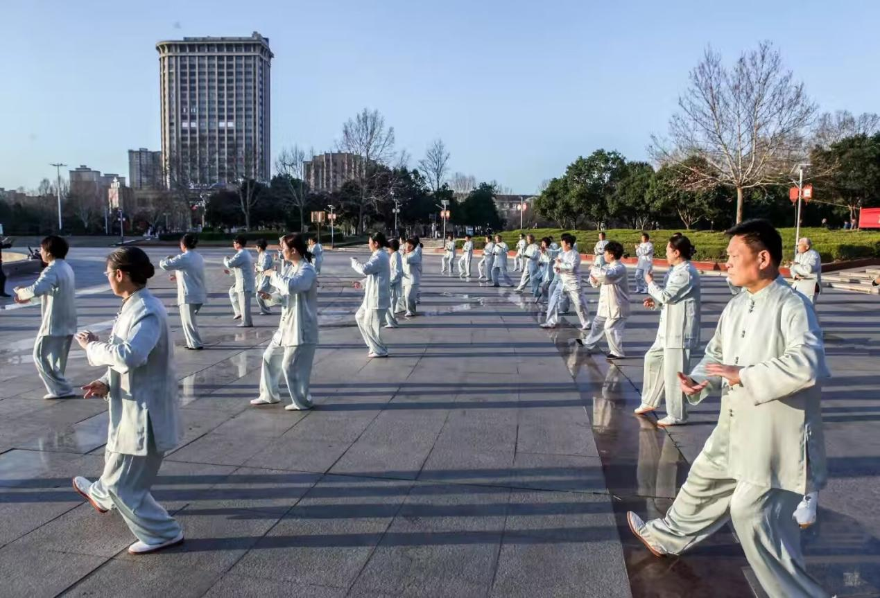 太极拳协会组织老年朋友400余人利用广场和公园以太极拳及太极剑(扇)等不同形式展演,共庆祖国76周年生日,祝愿祖国明天更富强、人民更幸福!