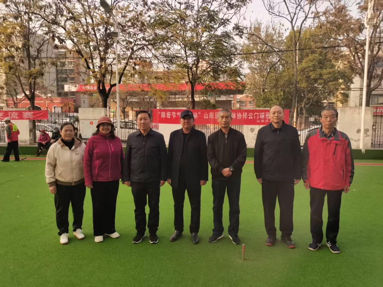 霜叶似火,秋染重阳;老骥伏枥,岁月凝香。10月27日,山阳区老年体协在市人民公园门球场举办重阳节门球赛暨祥云门球半年决赛。山阳门球一队、山阳祥云门球队、诗社门球队、军休门球一队、焦作工行门球队、焦煤集团门球队、焦南监狱门球队、五泰和门球队、焦作联通门球队、焦作铁路门球队、博爱门球队、军休门球二队、温县番田门球队和焦作监狱门球队共14支门球代表队的100余名老同志参赛。市门球协会会长孙本强,副会长于心法、汪青,山阳区老体协名誉会长刘平安,副会长冯香云、韩飞等领导到场观看助阵,并为获奖队伍和优胜个人颁发证书及奖品。