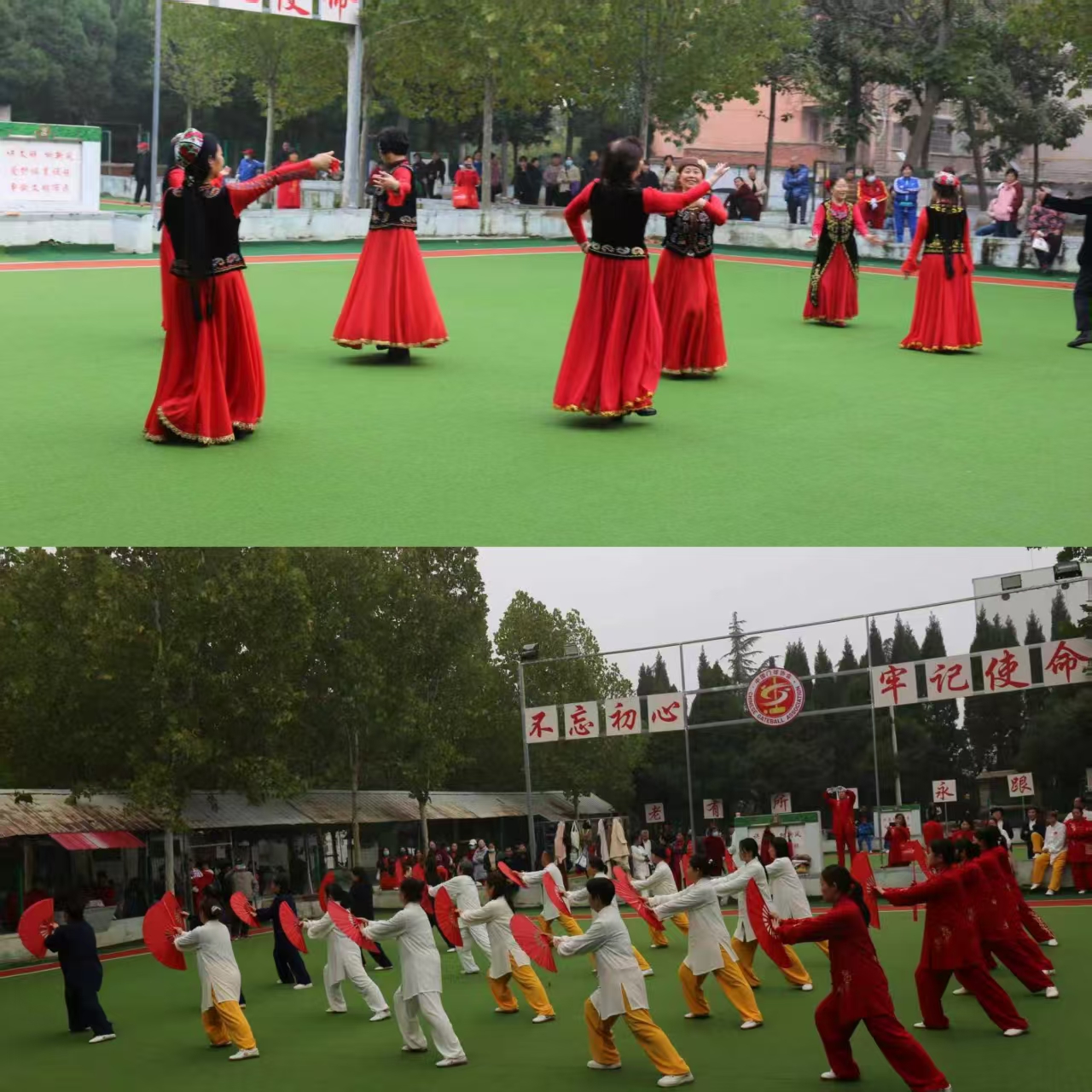 活动现场,由高村富兴舞蹈团的盘鼓队,十面盘鼓以欢快激越的《好日子》拉开了帷幕。柔力球队表演的节目是《吉祥中国年》,伴随着音乐,队员们在空中划出一道道优美的弧线,动作柔美舒展,体现了新时代老年人的风采。接下来的广场舞展示,更让大家耳目一新。广场舞是荥阳的特色活动项目,在2025年全国社会体育指导员广场舞大赛中,荥阳队代表河南省参赛,获自选套路一等奖、规定套路一等奖、最具特色奖、科学健身一等奖、体育道德风尚奖五个奖项。广场舞队表演的《红太阳照边疆》《好儿好女好家园》,队员们精神饱满,动作优美,观众不时报以热烈的掌声和欢呼声。200名队员组成的健身气功八段锦,为爱好武术和健身气功的观众带来了视觉盛宴。他们曾在2024年9月,代表郑州市参加河南省老年人健身气功大赛,并获得多个奖项武术、健身气功团队,动作整齐划一,一招一式,尽显深厚的功底。