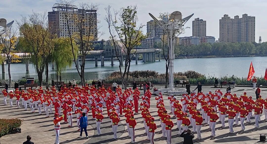 《尊巴健身操》由南阳铁西队的队员们热情演绎。她们身着荧光红运动服,伴随《最炫民族风》的欢快旋律,舞步奔放、活力四射,不少围观游客也情不自禁加入舞动行列,现场瞬间汇成一片跃动的海洋。