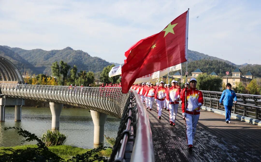 展演尾声,三队共168名队员组成巨大的“人”字队形,齐声高呼“健步新时代,银发展风采”,铿锵口号在山谷间久久回荡,将全场气氛推向高潮。