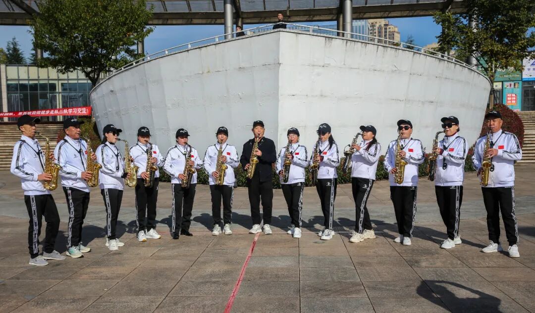 《萨克斯风》合奏环节,西峡白羽队合奏的萨克斯《北国之春》,悠扬的乐声与纷飞的银杏叶共舞,音符跳跃在林间水畔,为秋日注入一抹温暖的抒情。