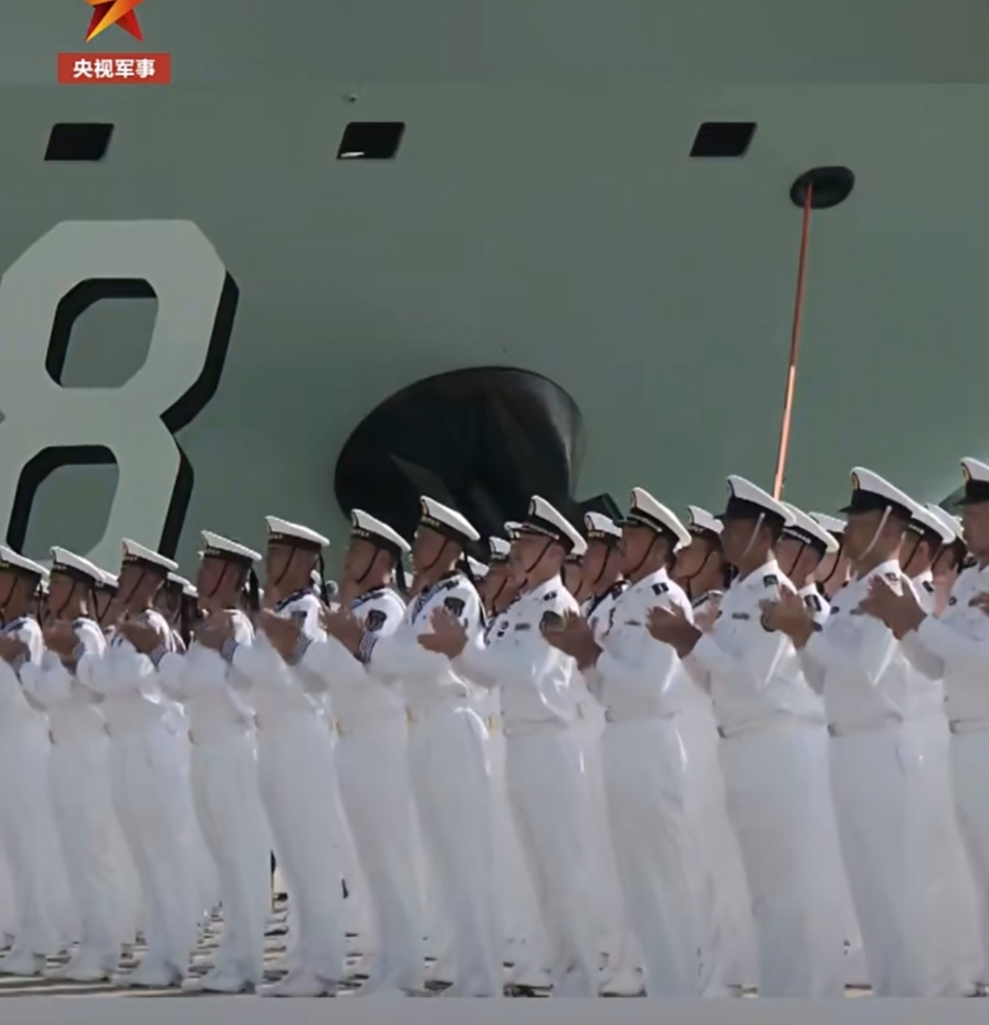 碧海惊霆,看巨舰,横涛破浪。云水怒,龙吟渊壑,鹰扬苍莽。百载图强终铸剑,千秋矢志今开嶂。镇南疆,列阵慑豺狼,风雷壮。