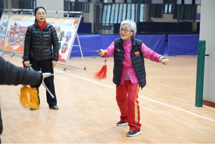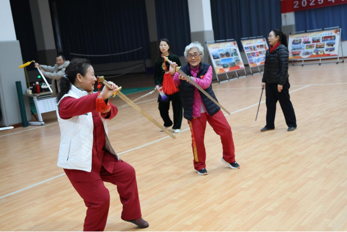 此次受邀的马春喜老师,是武术界备受敬重的名家,更是深耕老年太极拳推广与教学的践行者。今年86岁的她,出生于河南开封武术世家,6岁便随祖父习武,自幼浸润在武术文化的熏陶中,练就了扎实的功底与深厚的造诣。1953年,年仅13岁的马春喜便与母亲一同代表中南区赴天津参加第一届全国民族形式体育运动大会,凭借精湛技艺斩获金牌,随后作为最小的赴京表演团成员,在中南海怀仁堂为国家领导人表演峨眉刺,赢得了热烈赞誉。
