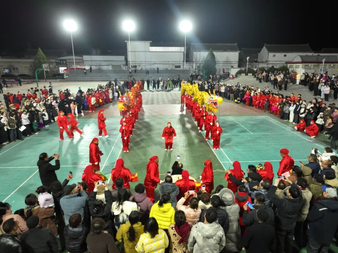 2月10日晚上7点,在沁阳市紫陵镇赵寨村老年人体育健身园,锣鼓喧天、人声鼎沸。一场充满浓厚韵味的舞龙表演正在火热进行,也为当地的小年夜晚带来了无限的喜庆与温暖。