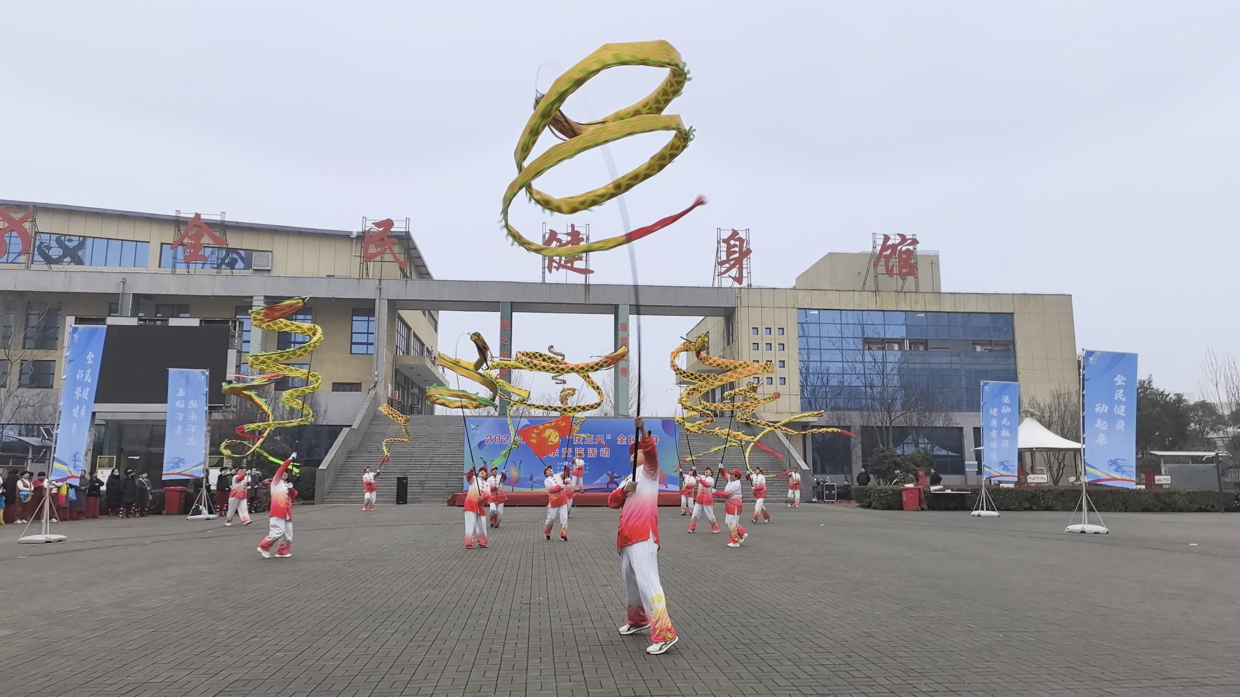开幕式结束后,精彩纷呈的健身展示活动正式拉开帷幕。本次展示项目丰富多样,涵盖了传统与现代、竞技与休闲等多个领域。既有刚柔并济的太极拳和健身气功表演,又有充满活动的现代健身操舞表演,还有充满地方特色的非遗文化传承——黄河飞龙表演。