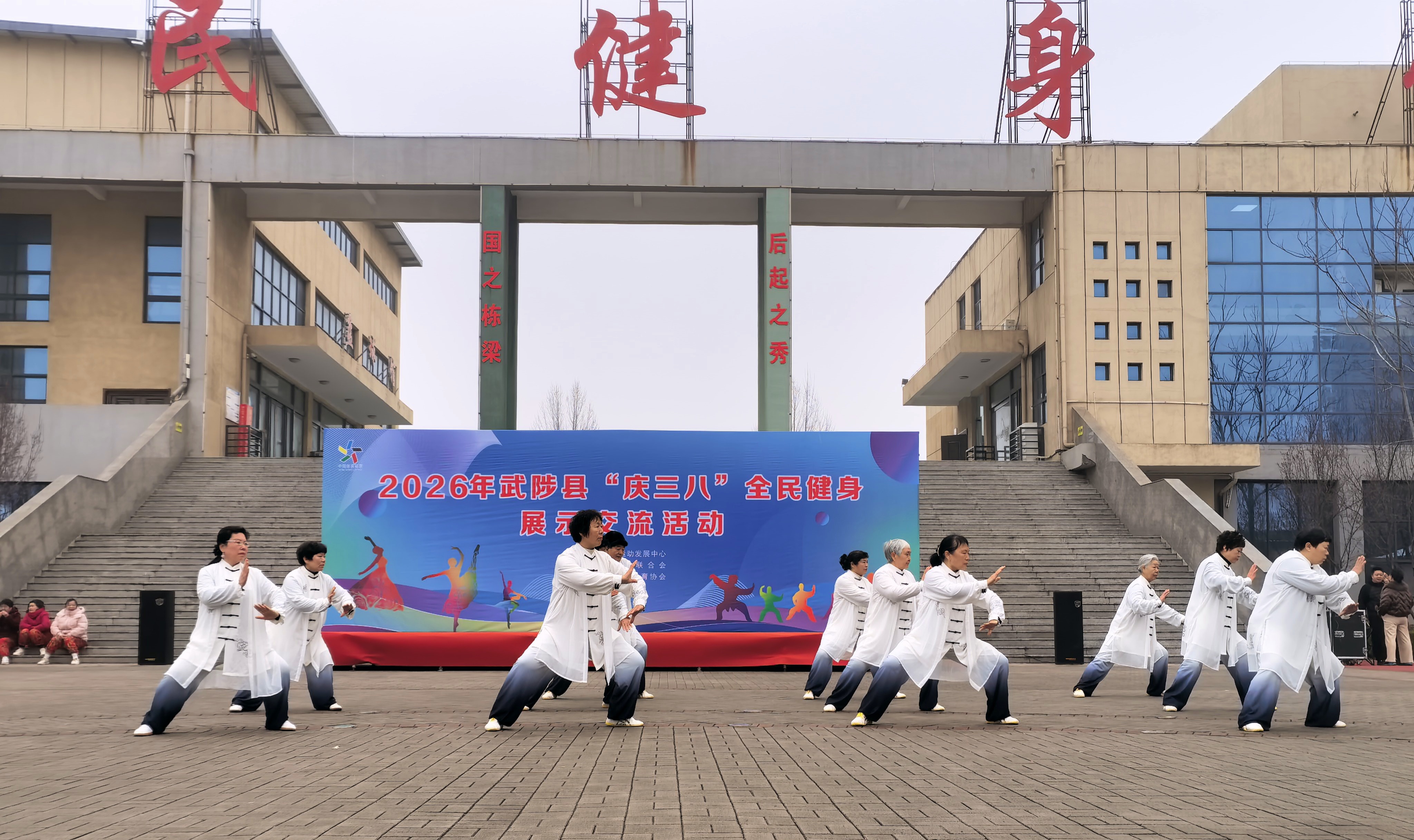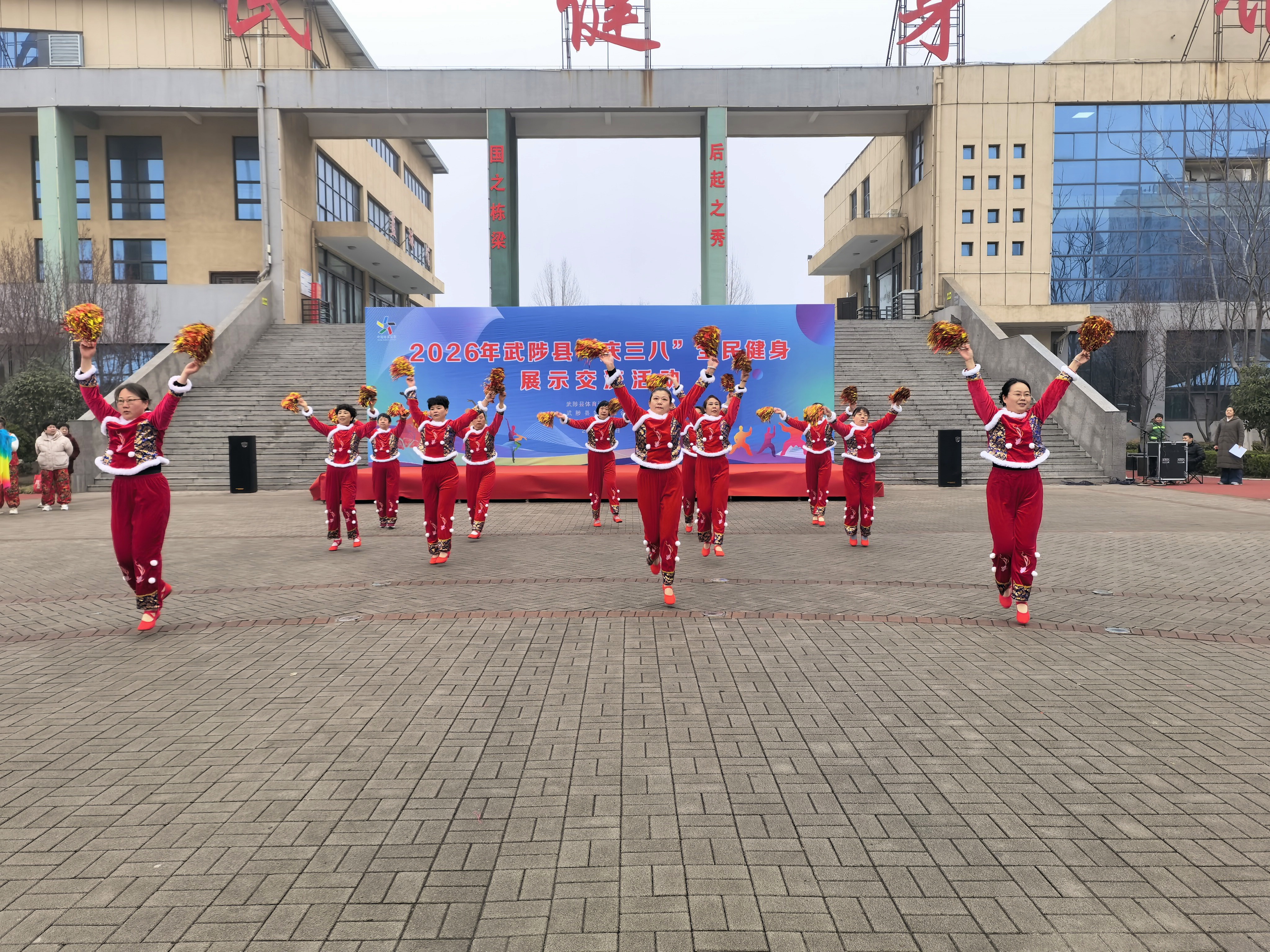为庆祝“三八”国际妇女节,推动全民健身事业发展,展现新时代女性健康、活力、自信的精神风貌,3月5日,武陟县成功举办了“庆三八”全民健身展示交流活动。此次活动由县体育运动发展中心、县妇联和县老年人体育协会联合举办,吸引了全县各行业、各年龄段的300余名女性积极参与。县老年体协冯欣主席参加开幕式并宣布活动开始。