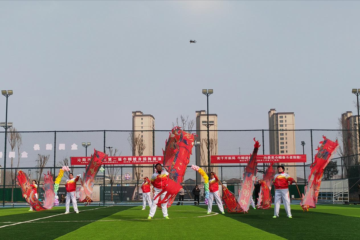 红衣列阵势如虹,健步铿锵动碧空。