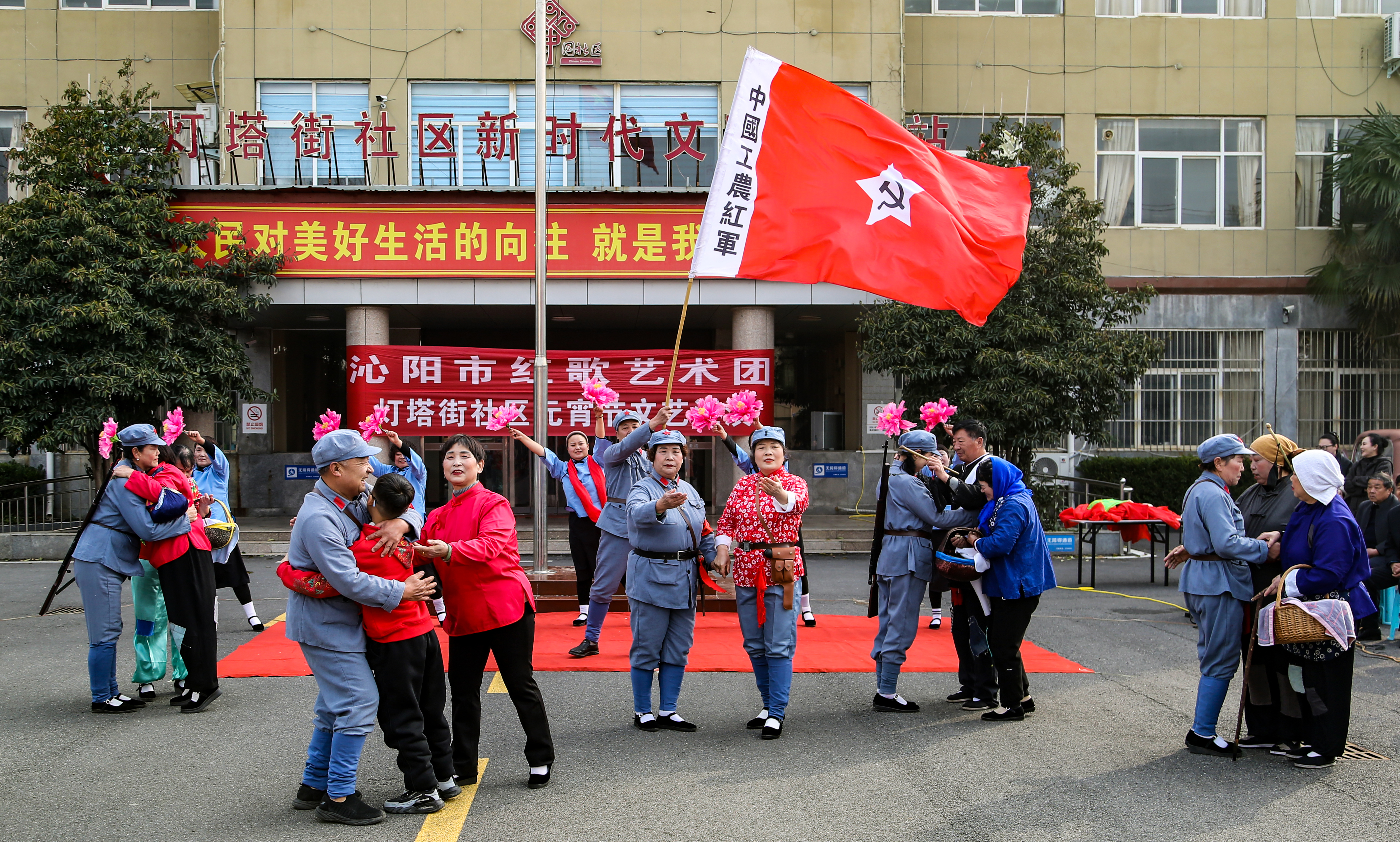 灯塔社区老体协工作站组织举办了庆元宵文艺汇演。热闹的威风锣鼓、欢快的舞蹈、手杖健身舞、新疆舞等受到居民的阵阵掌声。特别是精彩的情景剧《十送红军》,将演出推向了高潮。