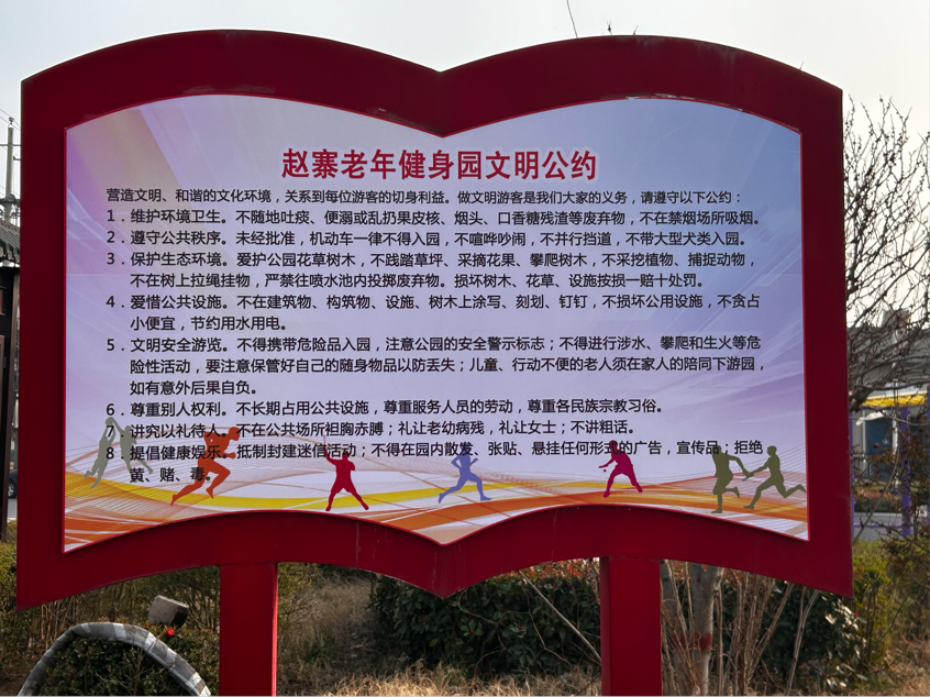 上图:赵寨村老年健身园文明公约