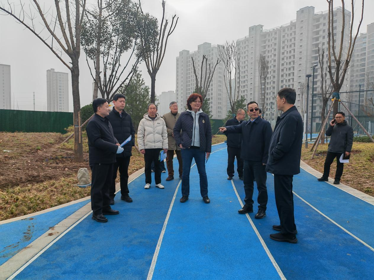 河南省老体协秘书长杨晓,焦作市老体协主席胡小平、副主席肖萍到沁阳市天庆体育公园及赵寨村老年体育健身园调研,沁阳市市长杨正栋、副市长李永斌,沁阳老体协主席宋龙太等领导陪同。(摄影 郅双燕)