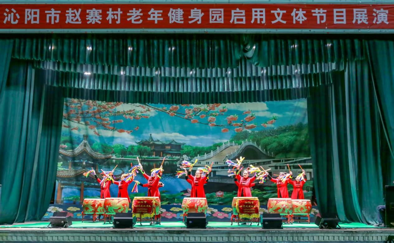 图为:为庆祝赵寨村老年健身园投用,沁阳市老体协艺术团积极组织近20个节目到该园进行演出祝贺。(摄影:张大明 李飞翔)