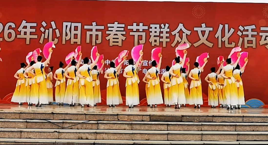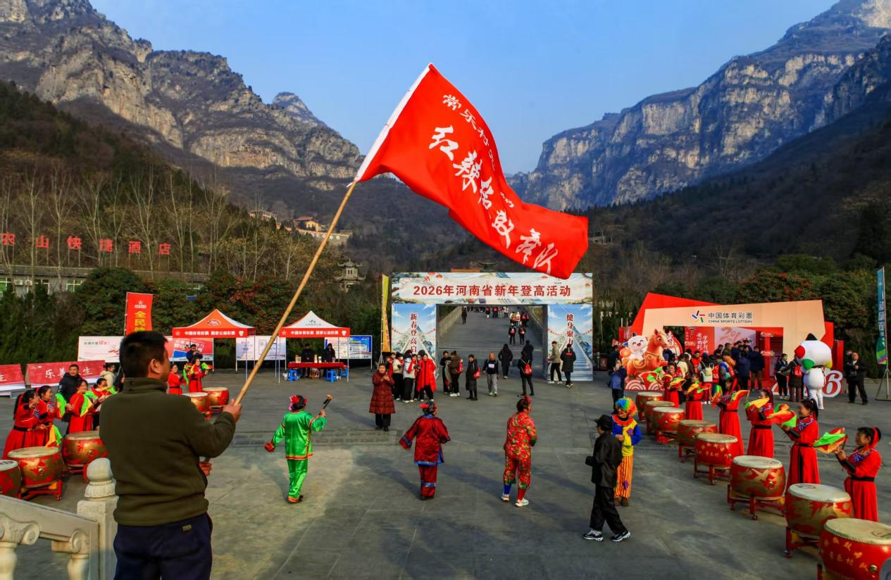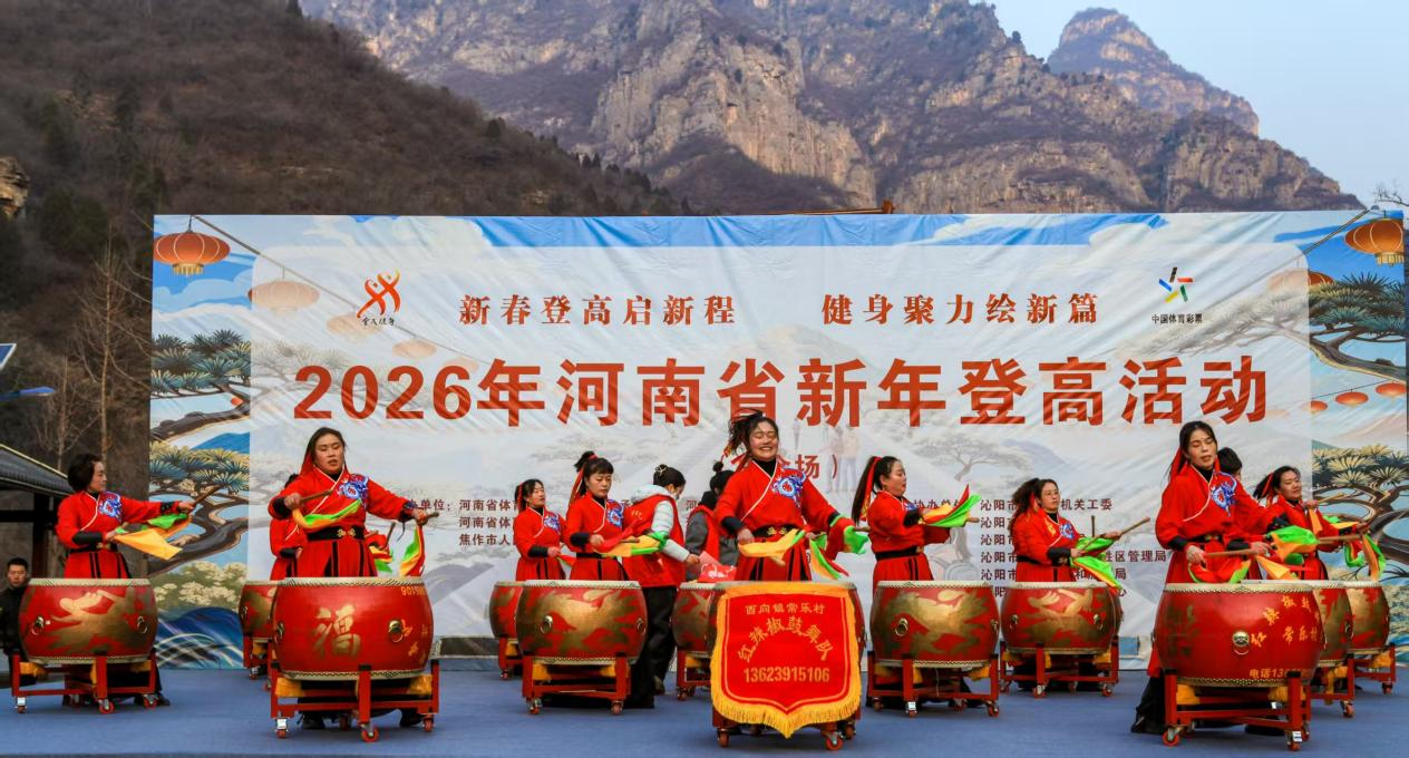 图为:沁阳市老体协组织千余人参加2026河南省新春登高活动,艺术团十余个节目参与演出。(摄影:李飞翔 张大明)